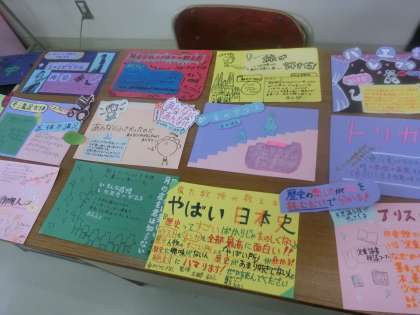 1年生の国語の授業では、自分のおすすめする本のPOPをつくりました。素敵な作品がたくさんできました。