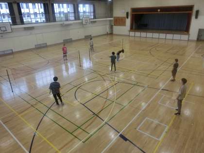 今日の1時間目には主にほっとルームを利用している生徒を中心にバドミントンを行いました。支援員の方も加わり楽しく汗を流せたようです。
