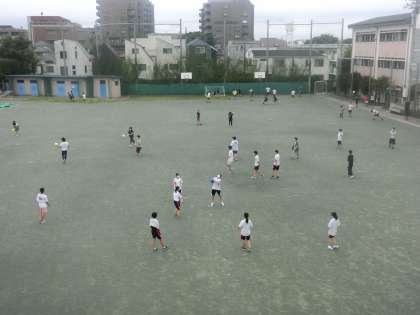 曇り空の下、やや蒸し暑さは残りますが、昼休みにはたくさんの生徒が校庭でボール遊びで楽しんでいました。