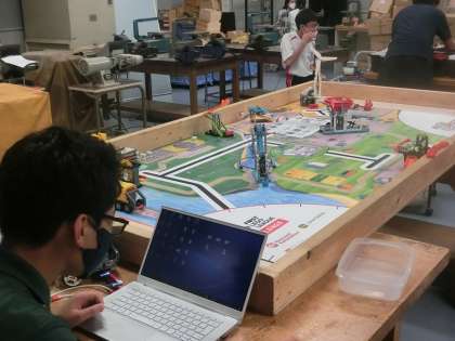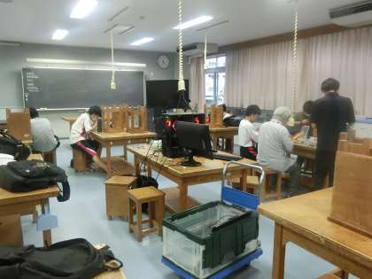 コンピュータ部の活動の様子です。12月に行われるプログラミングの大会「レゴ」に向けて準備に力が入ります