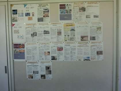 どのクラスも分野1政治・経済・産業、分野2:歴史・伝統、分野3:科学技術、分野4:文化・芸術、分野5:防災、公共、メディアの5つの分野について担当を決めて調べました。