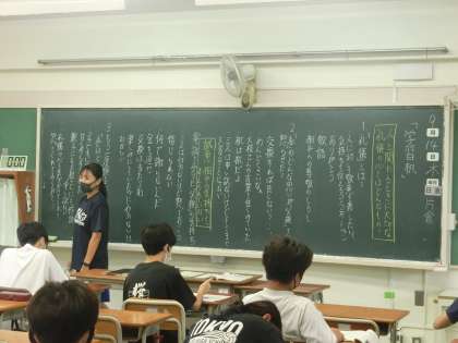 桜丘中学校では木曜日の1時間目に全校で道徳の授業を実施しております。こちらは1年生の様子です。積極的に意見を言う姿に好感が持てました。