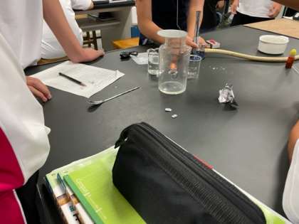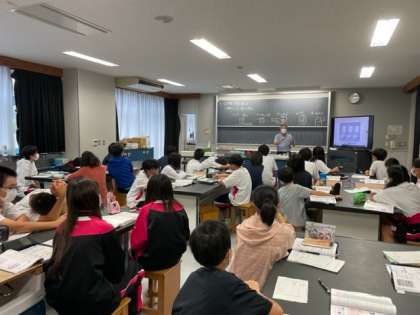 1年生の理科の授業です。今日はいろいろな方法を使って砂糖、片栗粉、食塩の性質を調べました。
