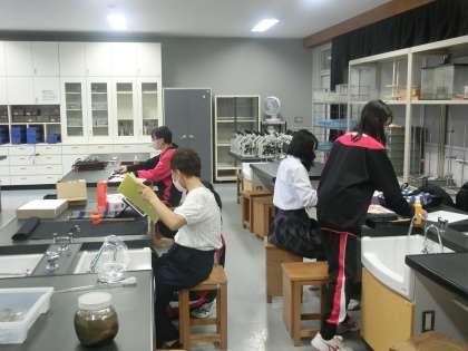 書道部です。今日は講師の先生がいらしてお手本を書いてくださいました。書道部の作品は北校舎一階の廊下に掲示してあります。素晴らしい作品ばかりです。是非ご覧ください。
