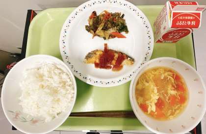 今回の図書コラボ給食では、瀬尾まいこさん著〔春、戻る〕に登場する料理を作りました。