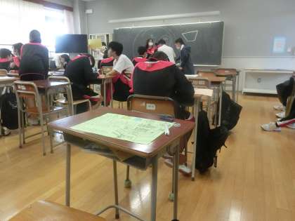 10日〜13日の2泊3日で行われた修学旅行。皆素敵な思い出が残ったようですね。今日は修学旅行で訪れた見学地のうち印象に残ったところを1つ選び、各自でポスター形式で紹介するといった事後学習を行いました。