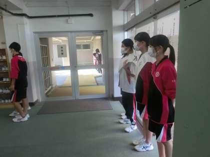 今朝も昇降口で立候補者、応援者が元気な声で投票を呼びかけました。