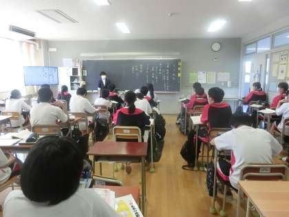 2年生の国語の授業では、世田谷区教育委員会より講師の先生にご来校いただいて研究授業を行いました。内容は「敬語」についてでした。