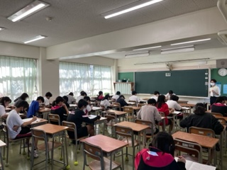 1・2年生は朝学習の時間で英語の積み重ねテストを行いました。