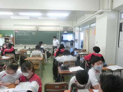 1年生の社会の授業です。今日は平安時代に藤原氏がどのようにして勢力を伸ばしていったかを資料を基に話し合いました。