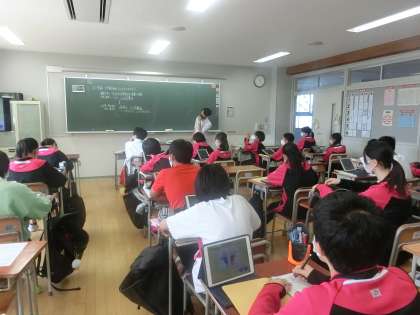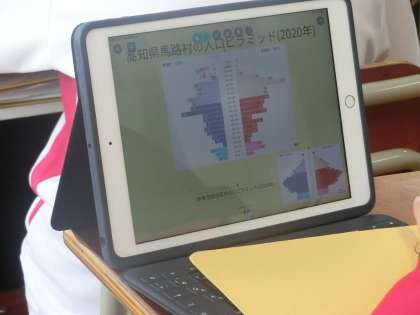 2年生の社会の授業です。今日は中国四国地方の人口の特色と課題について資料を読み取りながら学びました。