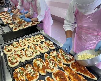 ナンを使ったピザは、普段トーストなどで使う食パンと同じ規格にしていますが、伸ばされているぶん大きく感じるようで大きさに驚く生徒が多かったです。