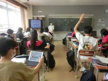3年生の英語の時間では、英語を使って「人権」について学びました。今日は特に外国人についてスポットをあて、日本にいる外国人についての人権上の課題やその解決法について英語で考えました。