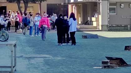 本日、午前中に校庭で青少年経堂地区委員会主催の火起こし体験と焼き芋づくりが行われます。朝早くから準備が進められています。本校の生徒もボランティアとして参加しています