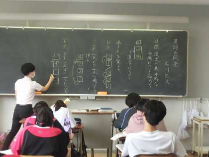 2年生の国語の授業では、漢詩の授業が始まりました。今日はレ点など漢文を読む上での基礎的な約束事を学びました。