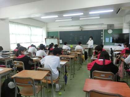 1年生理科の授業では河川の三作用「侵食、運搬、堆積」についての学習でした。
