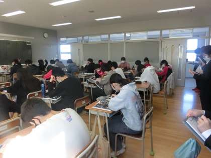 3年D組の理科の授業の様子です。こちらも東京農業大学の学生の皆さんが多数参観に来ました。
