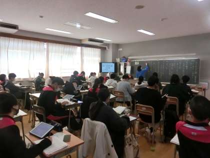 3年F組の国語の授業の様子です。今日は松尾芭蕉の「おくのほそ道」についての学習でした。