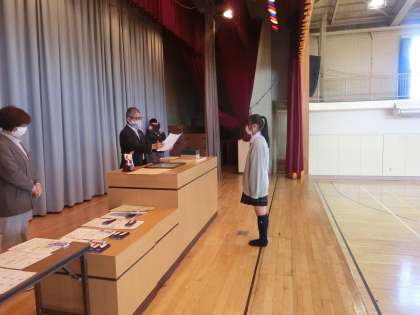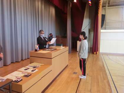 全国書画展特選、高野山書道協会賞、高野山準特選を受賞した生徒の表彰を行いました。こちらは2年生です。