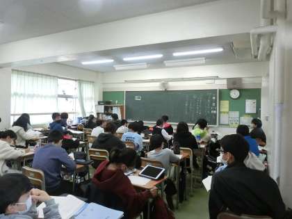 1年生の国語の授業です。今日の単元は「言葉を持つ鳥シジュカラ」でいした。多くの保護者の皆さまにご参観いただきありがとうございました。