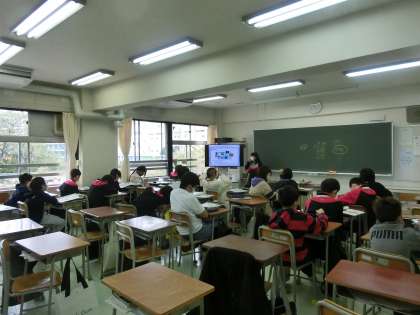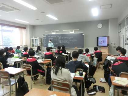1年生の英語の少人数授業の様子です。こちらはE組、F組です。