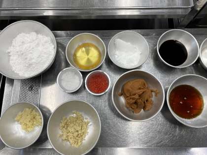 中華料理はたくさんの種類の調味料を使います。味をみて加減しながら加えていきますが、辛味の調整が一番難しいです。給食を食べる700人を考えるとどのくらいが良いのだろうと…悩みどころです。