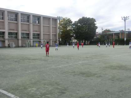 今日の午前中、本校のグランドでサッカー部は区内のチームと練習試合を行いました。30分ハーフを2試合行い2試合ともよい経験を積むことができました。
