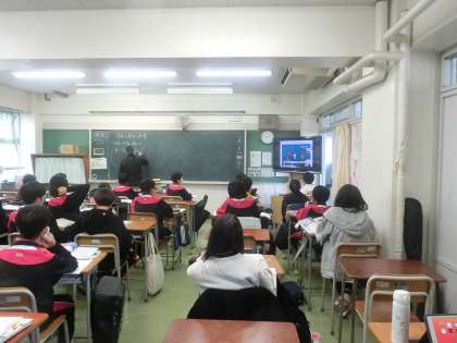 1年A組の授業の様子です。理科の授業では気体の性質について動画を見ながら学習しました。