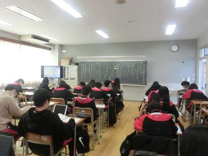 3年D組の授業の様子です。今日は「おくの細道」の各場面について表現の使い方に気を付けながらまとめる学習をしました。