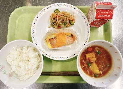 鮭・にんじん・玉ねぎ・じゃがいも(北海道)、もやし(栃木)、しょうが(高知)、きゅうり(埼玉)、鶏肉(岩手)、米(秋田)