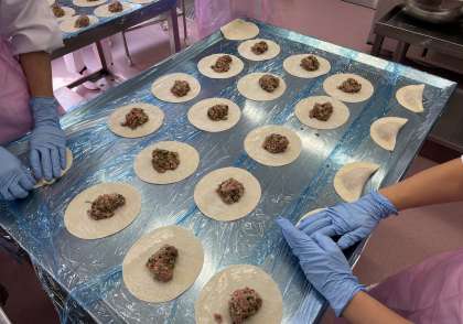 どの学年からも大人気なジャンボ餃子。朝から楽しみにしていてくれたのは生徒だけではなく、先生のなかにも。