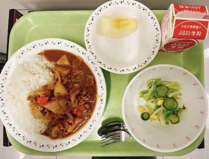 豚肉・きゅうり(群馬)、にんにく(青森)、しょうが(高知)、玉ねぎ・にんじん・じゃがいも(北海道)、キャベツ(愛知)、りんご(長野)、米(新潟)