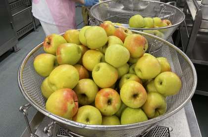 今日のりんごは、シャキシャキで甘味もありおいしかったです。黄色の果皮に赤みが入る『ぐんま名月』という品種です。