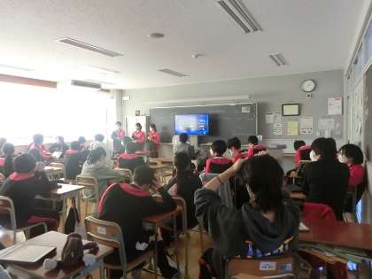 2年生は先月行われた職業体験の事後学習のクラス発表を行いました。