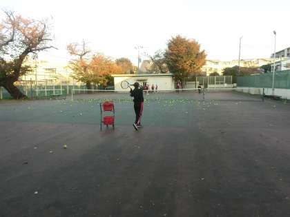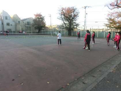 テニスコートでは今日は女子テニス部が練習していました。コートが一面しかないため男女で日を分けて使用しています。