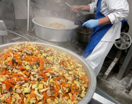 具材を煮つけて、炊けたご飯と混ぜていきました。