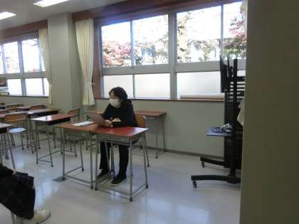 3年生は本日の1時間目、教室・特別教室を使い面接練習を行いました。練習とはいえやや緊張気味な様子でした。