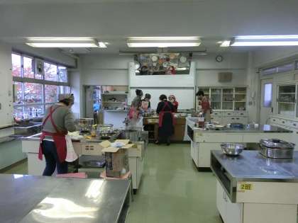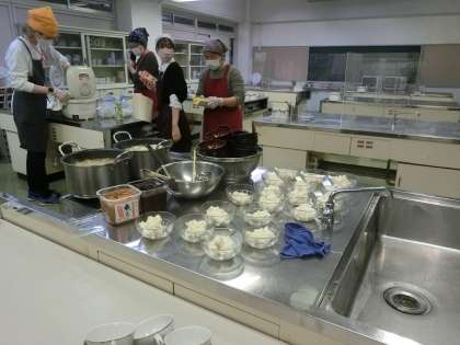 今日は11月の夜の勉強教室の日です。昼過ぎより「笑顔咲く街キッチン」の皆さまが調理室で夕食の準備をしてくださいました。