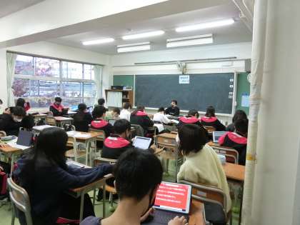 1年生の朝学習はキュビナを利用して各自の課題に取り組みました。