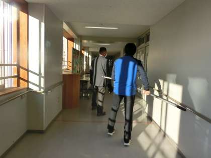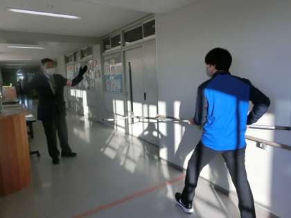 先生方がさすまたで不審者役の警察官へ対応しました。