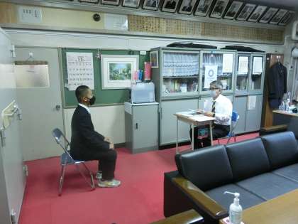 今週から3年生が校長先生による面接練習に臨みました。いつもよりやや緊張している様子でしたが皆しっかりと質問に答えられました。