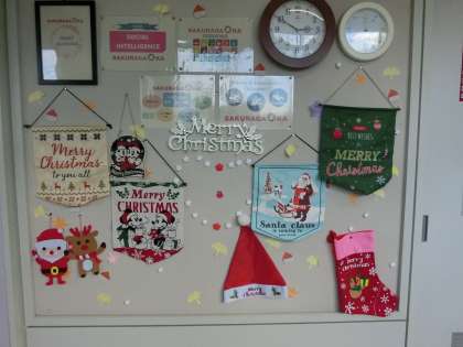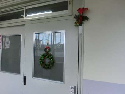 校長室前の廊下の飾りつけも12月バージョンに模様替えです。季節のうつろいを感じますね
