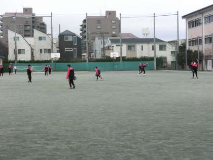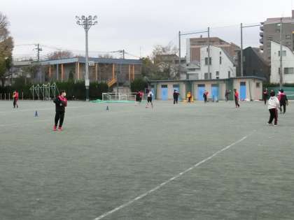 今日は曇り空で日中でも気温が上がってきません。そんな寒空の下でも校庭いっぱいに広がって元気に体育の授業に取り組んでいます。