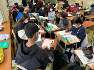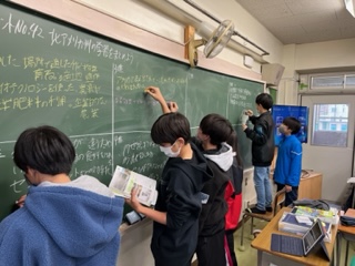 農業、工業、生活と移民など様々な視点から考えをまとめ、黒板に書いて意見を共有しました。