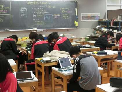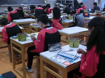 2年生の美術では、抽象画がかなり仕上がってきました。