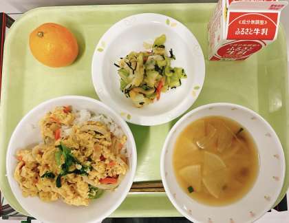 今日の図書コラボ給食は、『泣き終わったら ごはんにしよう』(武内昌美/著)から『親子丼』を作りました。