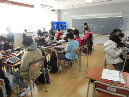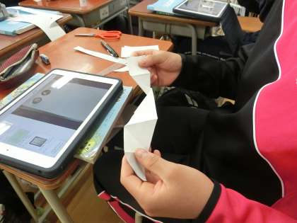 2年生の家庭科の授業では江戸時代から伝承されているといわれている六角返しを制作しました。今日は型紙を切り取り折り込んでいきました。出来上がりが楽しみkですね。