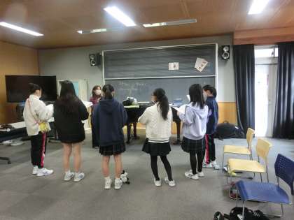 2年生の音楽の授業です。合唱コンクールの自由曲のパート練習を行いました。よく声が出ています。
