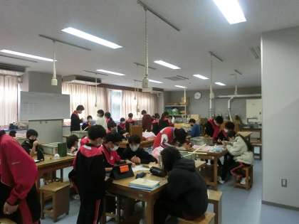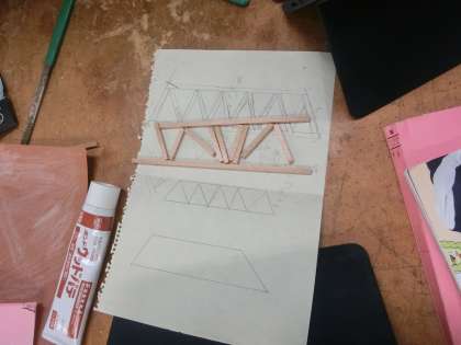 1年生の技術では橋の模型に取り組んでいます。班でで設計がかなり進んで組み立てに入りました。