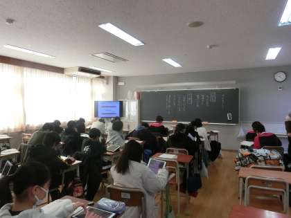 木曜日の1時間目は全学年で道徳の授業を行っています。こちらは1,2年生の様子です。考えながら意見を出し合っていました。